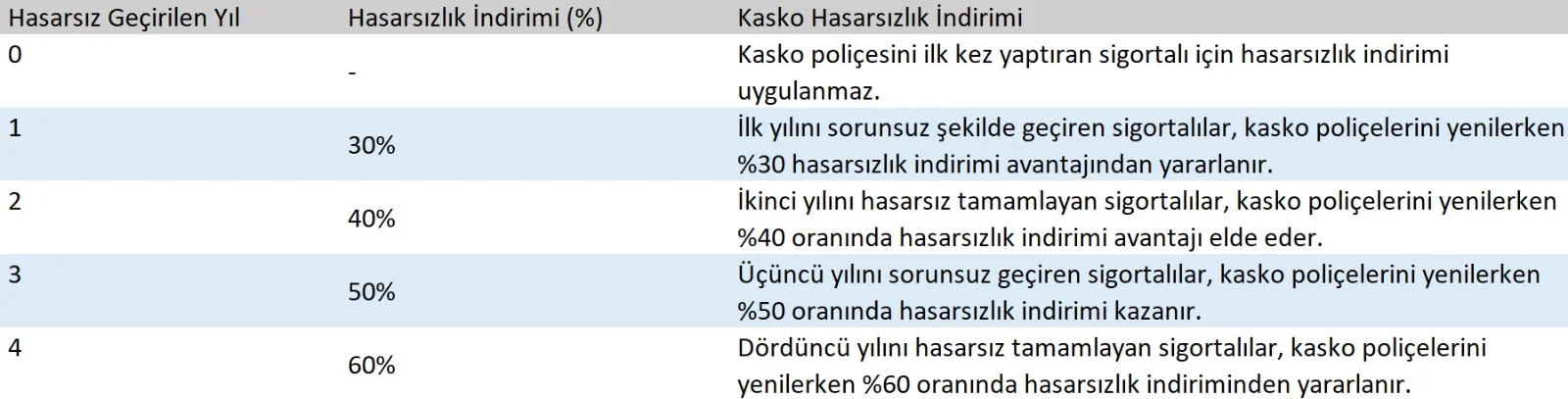 Kasko sigortası ile aracını güvence altına aldığında, sigorta poliçesi süresince aracının hasar geçmişi kaydedilir. Bir sonraki poliçe döneminde, eğer aracın hasarsız kalmışsa, hasarsızlık indirimi uygulanır. Bu indirim, aracının hasarsızlık durumunu koruduğun sürece, belirli kurallar ve limitler doğrultusunda her yıl artar ve sigorta primlerinde avantaj sağlar.