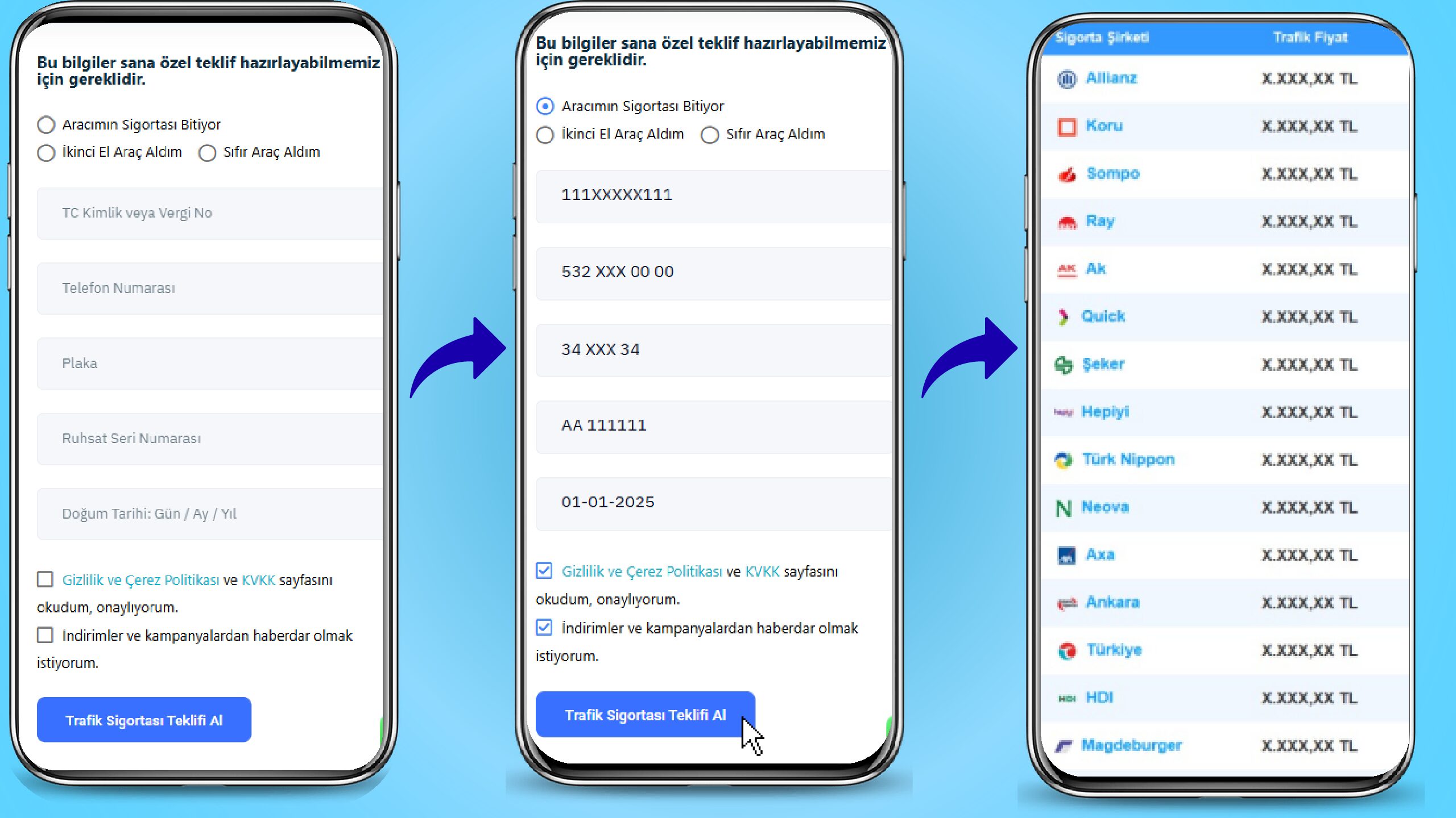 Sitemizdeki formu doldurarak 20’den fazla sigorta şirketinden anında teklif alın, fiyatları karşılaştırın ve en uygun poliçeyi kolayca seçin!